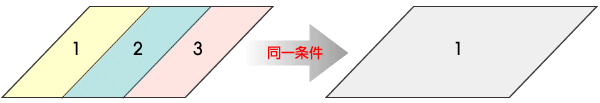 数筆の土地を一筆にする登記です。従前の土地の地目、抵当権等条件が同じである必要があります。