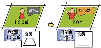 土地を測量した結果、登記簿の地積と相違する場合に更正する登記です。外周の筆界を隣接者および道路、水路管理者等と立会確認した後、地積測量図を添付して申請します。